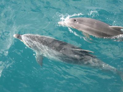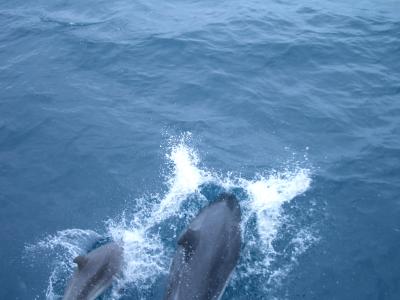 Schwimmen mit Delphinen haben sie uns versprochen, durften leider nur vom Boot aus zuschauen: