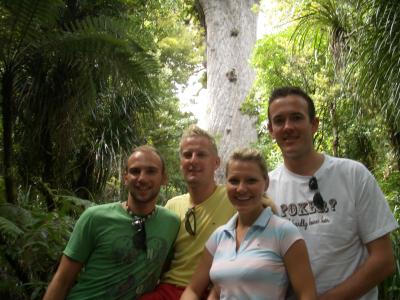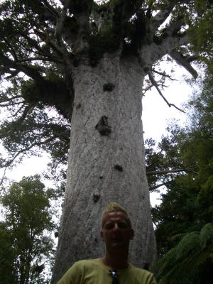 Im Hintergrund seht ihr den "Tane Mahuta",den groessten Baum Neuseelands (Umfang 14m,Hoehe 52m):